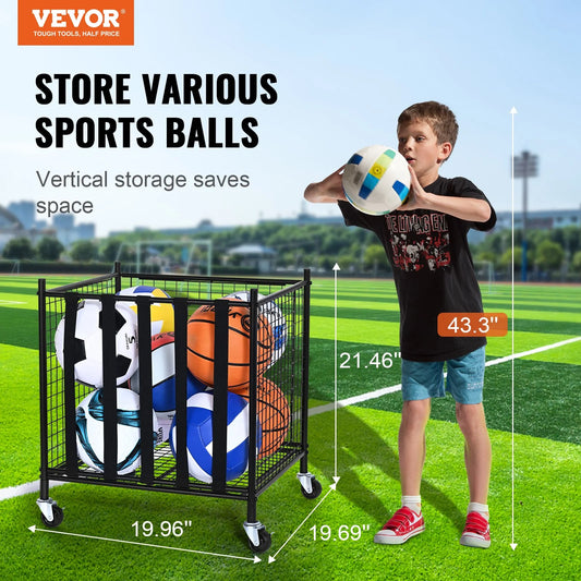 VEVOR Rolling Sports Ball Storage Cart, Lockable Basketball Cage with Elastic Straps, Sport Equipment Holder Organizer for Indoor Outdoor, Steel Storage Rack for Garages, Playgroup, Gym and Schools