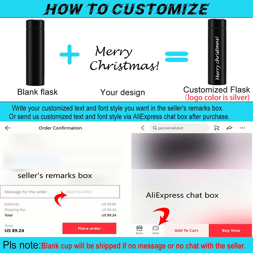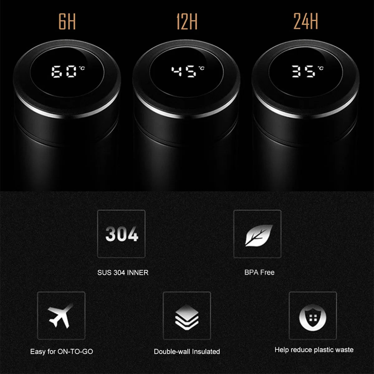 Custom Name Coffee/Tea thermos, 500ml Smart Coffee bottle, LED Temperature Display Tea Infuser Bottle, Sports Water Bottle