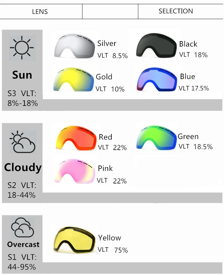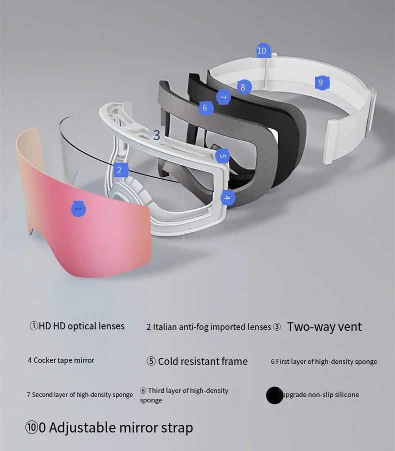 Ski Snowboard Goggles Women Men Skiing Eyewear Mask UV 400 Snow Protection Over Glasses Adult Double Anti-Fog Cylindrical